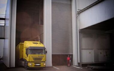 Isoliertes Aluminium-Rolltor für Oldenburg. Maße: 8000 × 7000 mm.